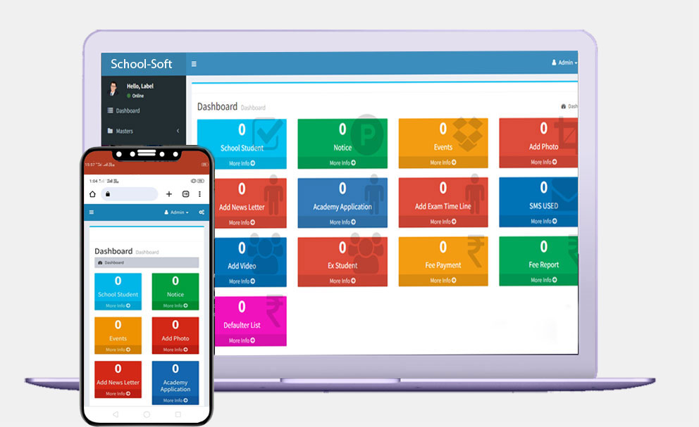 A cloud based ERP for School Management.It includes Online Students Admission, Offline Students Admission, Fee Management with break up and single or composite fee receipts, School Exams Management with Progress Report Cards and Marksheets, Merit Lists, Topper List, Notices, News, Events with still pictures and videos upload, dynamic website with admin control, User Managements and many more..